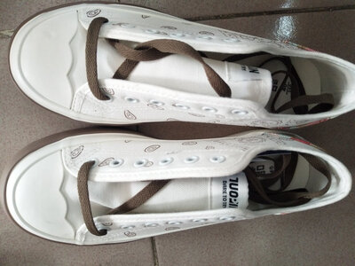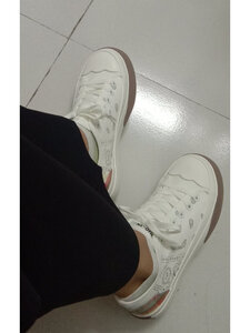 买的是37码 有一点大了 鞋子非常好看 颜值很高 上脚效果也不错 物流速度快 包装没有破损 有两个鞋带颜色 我用的深色 感觉配起来比较好看 推荐购买哦
