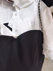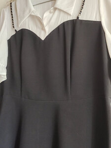 超级棒。款式方面,款式是假两件,整体设计包括袖口都很好看。金属也不显链接,洗了好几次,都没有变色。黑色裙子也不会把白色部分染色,穿着很舒适。裙子垂坠感也很好。