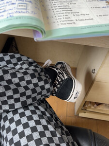 这双带范斯logo的板鞋已经是第二次购买。反皮跟帆布相结合的材质,穿着舒适不磨脚,女儿最喜欢穿的一双鞋。配任何衣服都适合,百搭款。