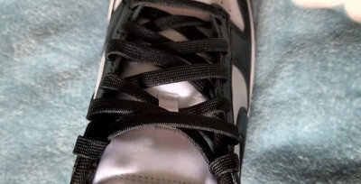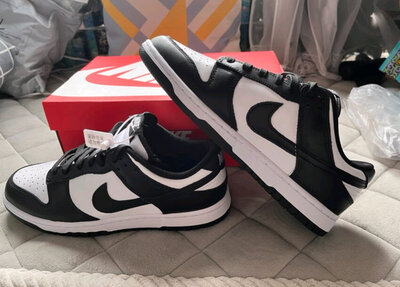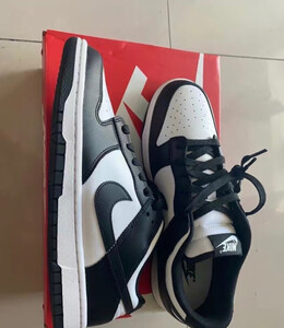 鞋子很不错,熊猫dunk一直是我想要的一双球鞋今天看价格合适终于下单,穿起来就是板鞋的脚感,舒适度适中,但是很好搭配,强烈推荐